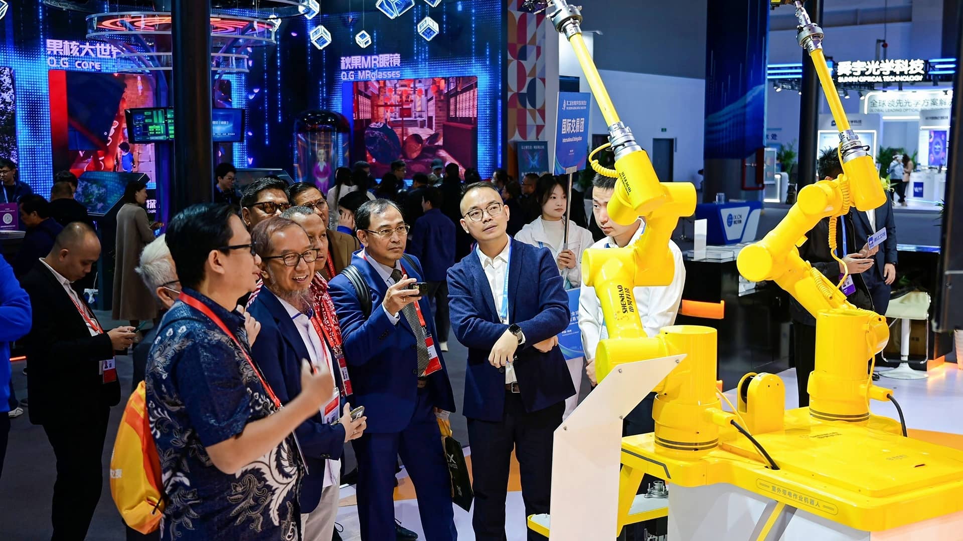 申昊科技攜豐富的人工智能機器人行業解決方案和最新研發成果驚艷亮相,不僅吸引了浙江省副省長、省黨組成員盧山及相關領導的蒞臨指導,還受到央視新聞、新華社、中國藍新聞、杭州日報、廣東電視臺等多家媒體的報道,也引起了海內外眾多觀眾的關注和興趣。
